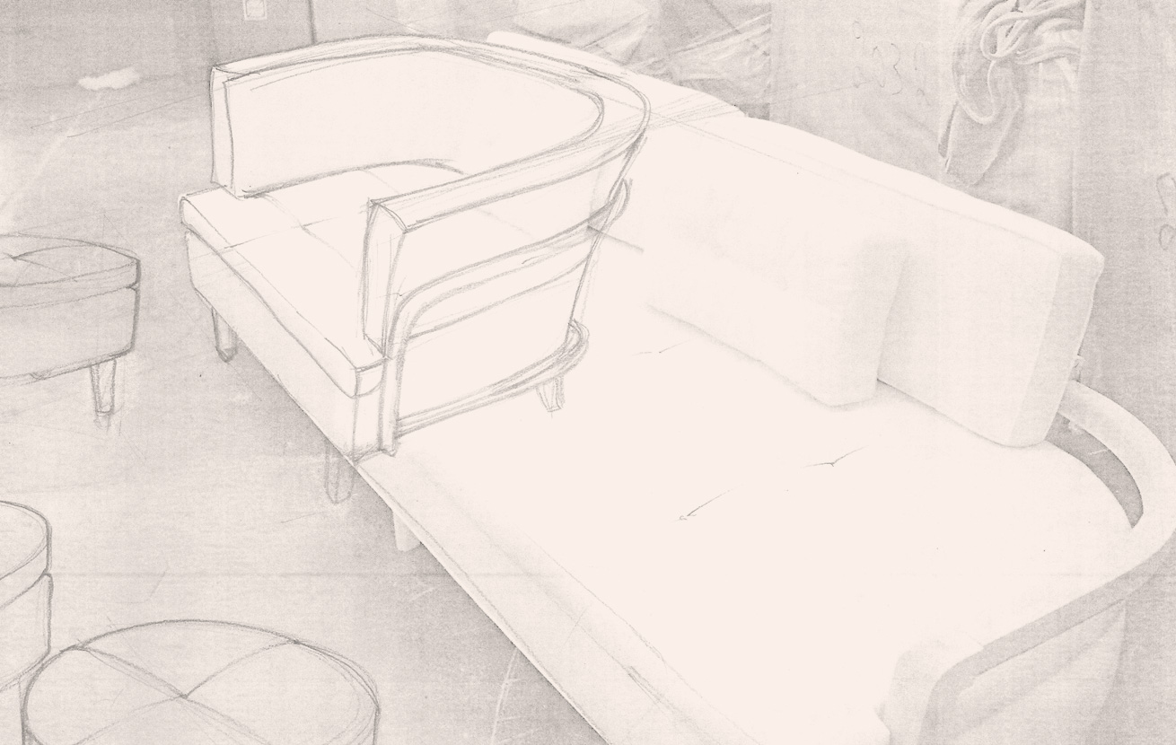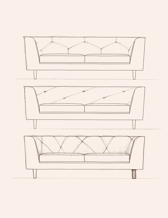 An upholstery collection of sofas & ottomans informed by the classic Chesterfield. Designed to bring a clean-lined and contemporary perspective to a transitional product line. Both patterns reference traditional tufting: the random quilted pattern a playful take, while abstracted hex shapes bring modern geometry.
