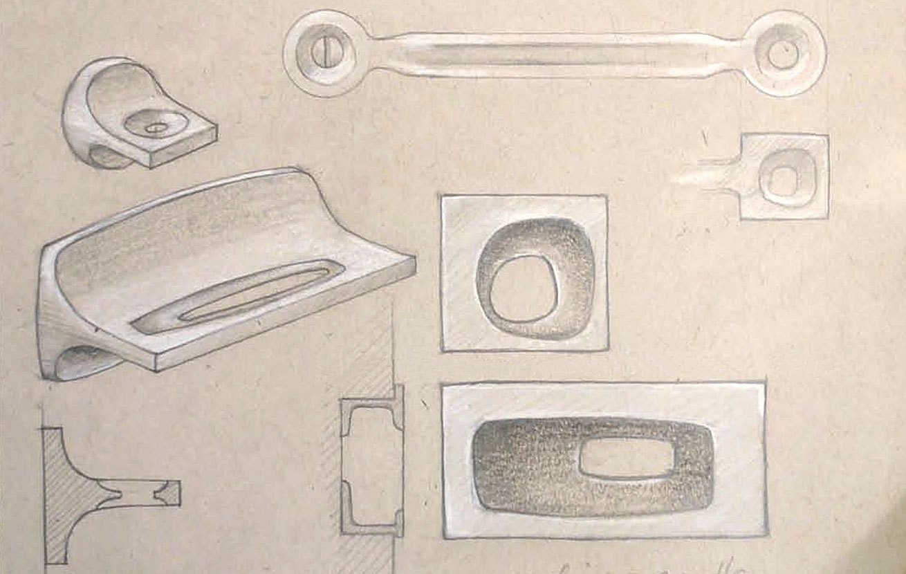 One of three collections of handcrafted cast bronze hardware designed for Rocky Mountain Hardware. Inspired by reductive processes & organic materials, these simple pulls capture the essence of function, use and wear over time. Contrasting rectilinear solids with organic shapes, each pull is scaled to the hand.